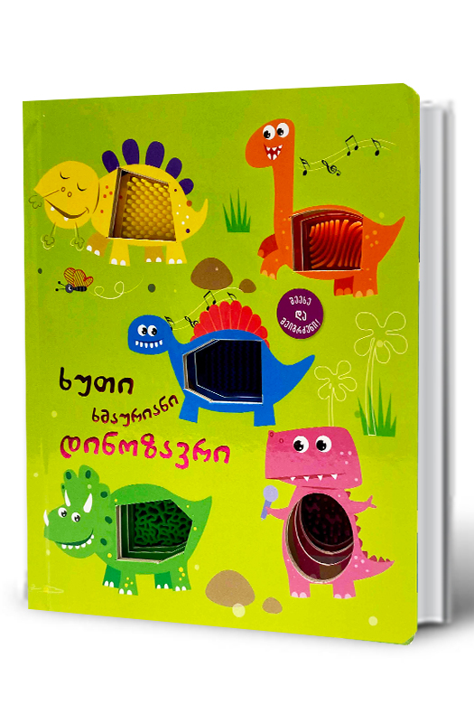 წაუკითხე შენს პატარას ხუთი ხმაურიანი დინოზავრის ამბავი. ამ შესანიშნავად ილუსტრირებულ წიგნში ბავშვს შეუძლია დაითვალოს დინოზავრები და გახალისდეს მათი თავგადასავლით, აღმოაჩინოს ეკოლოგიურად სუფთა კაუჩუკის ჩანართები და შეეხოს მათ!